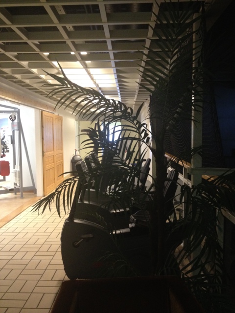 Om man nu väl börjat lägga märke till den här konstiga formen av botanik, kommer man även att lägga märke till att placeringen av den ibland är ännu lustigare. Det behövs uppenbarligen träd lite överallt; Sjukstugor, kaféer, apotek, sporthallar, gym, kontor, kommunhus, banker, klädaffärer, skolor. Och så vidare. Och ju mer jag tänker på det, desto fler träd ser jag. Här är till exempel den frodiga palm (??!) som fångade mitt intresse idag på Camp Gielas i Arvidsjaur. Ja. Orden räcker inte riktigt till känner jag. Skumt, helt enkelt. En snabb överblick i lokalen och jag räknade till åtminstone sju olika exemplar plastträd. Gielas toppar därmed hittills listan över den minst smakfullt inredda lokalen någonsin.