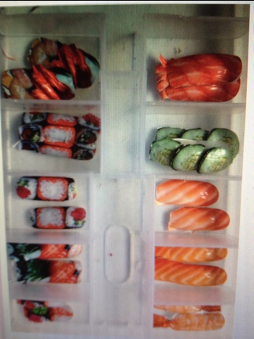 NaglarEn delikat lunchlåda med allsköns mix av sushi? Det är så det förefaller när man tittar på bilden, men vad du egentligen ser är ett gäng lösnaglar! Kul idé, men jag som inte ens gillar sushi när den ligger på tallriken skulle nog knappast få för mig att ha det på naglarna. Lite förtjust blev jag ändå i laxbitarna.