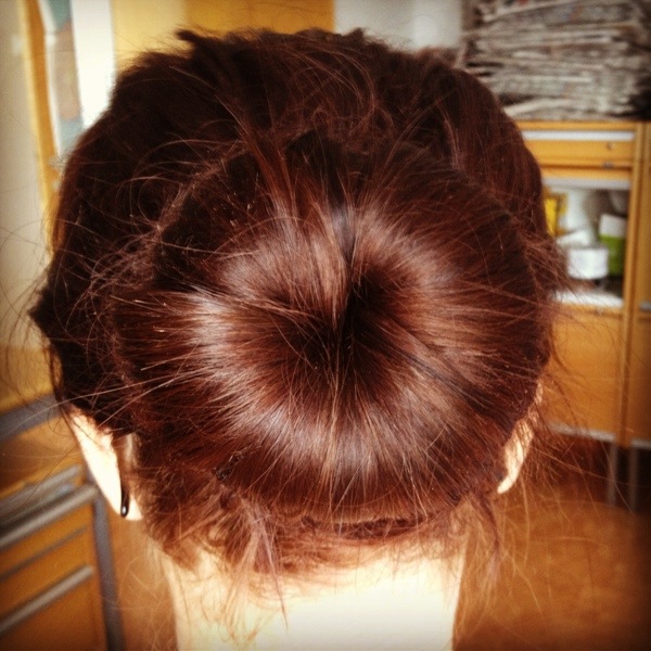 Gjorde en donout bakom huvudet idag, skönt med uppsatt hår ibland.