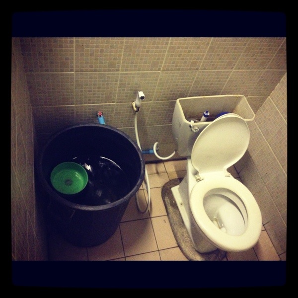 Skithusen, eller toaletterna, här i Thailand är alltid ett helt äventyr att besöka. Man vet liksom aldrig vad man får. Ibland får man fundera en stund över hur man tänkt, andra gånger är det glasklart. Den värsta toa-upplevelsen hittills är nog dasset på restaurangen på Langkawi. Nöden har ingen lag, sägs det, och det stämmer väl visserligen. Men det finns också gränser för vad man klarar av att stå ut med när det trycker på.
