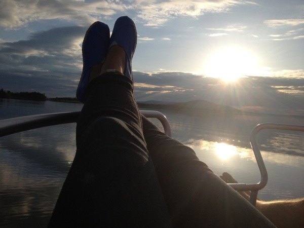 Arjeplog bjöd på en riktigt vacker kväll som jag och Macke såg till att avnjuta från första parkett. Vi drog ut med båten, satte oss i fören, lade upp benen på räcket och bara njöt.