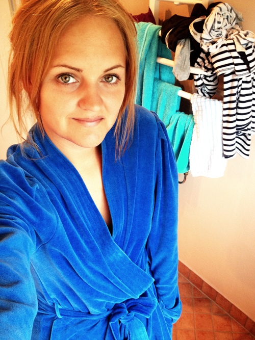 Morgonstund i velour med rynkade axelpartier. Mammas raritet till morgonrock skänker fortfarande glädje, trots att den torde vara inköpt någon gång precis när jag var född – eller strax innan. Ja, emellan raderna så förstår ni kanske att den är gammal, trots att jag ser så ung ut. ;)