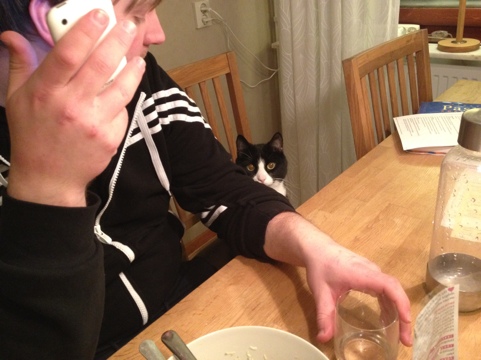 AllmäntDet märks att Torsten har saknat Magnus. Han har hela tiden varit en stor favorit, och nu när han äntligen kommit tillbaka från Leksand, är det till Torstens stora förtjusning. Igår när vi åt middag satt katten på stolen bredvid Magnus och tittade på honom. Sen, när vi förflyttade oss till vardagsrummet låg han och spann i Manges knä hela kvällen.